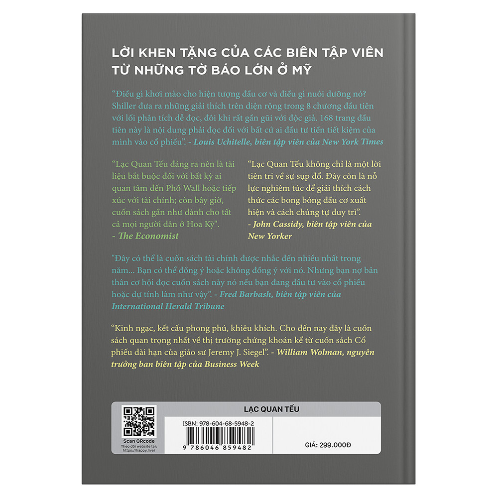 Nếu tìm kiếm trên Google những cuốn sách tài chính kinh điển mà mọi nhà đầu tư nên đọc, bạn sẽ thấy cái tên Lạc quan tếu (Irrational Exuberance) của giáo sư kinh tế học đoạt giải nobel 2013 Robert J.Shiller xuất hiện ở nhiều danh sách uy tín khác nhau.