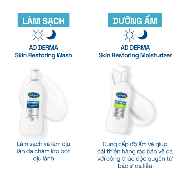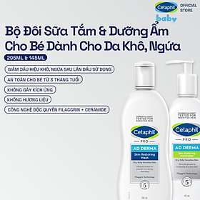 Bộ Sữa tắm dưỡng ẩm cho viêm da cơ địa Cetaphil Pro AD Derma Wash 295ml + Sữa dưỡng ẩm dịu lành cho viêm da cơ địa CETAPHIL PRO AD DERMA SKIN RESTORING MOISTURIZER 145ml
