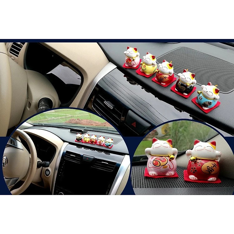 Bộ 5 Tượng Mèo Thần Tài May Mắn, Trang Trí, Để Taplo Ô Tô - 8874 #cute