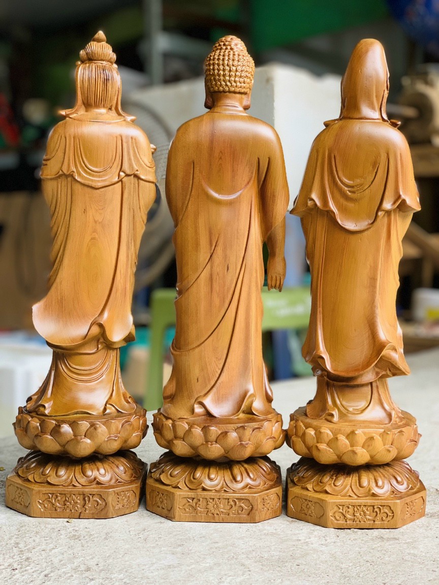 Bộ tượng phật Tây Phương Tam Thánh cao 40cm gỗ bách xanh