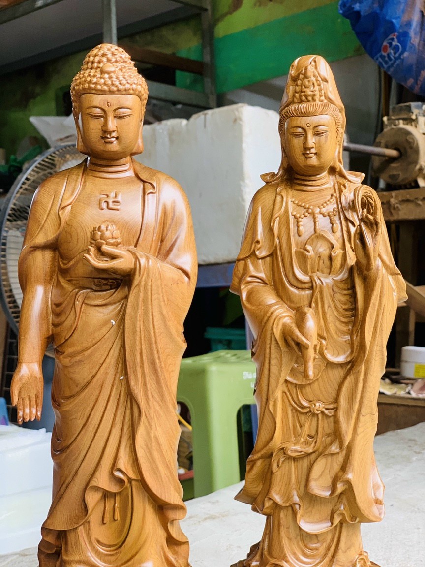 Mua tại TiktokBộ tượng phật tam thánh được làm bằng chất liệu gỗ bách xanh thơm nức tự nhiên 100% Kích thước cao 40×12cm _ Bộ tượng phật tam thánh được trạm khắc tỉ mỉ tinh sảo kỳ công .Đi hầu hết tất cả mọi chi tiết nội dung hoa văn của tượng phật đều được ngọt tỉa chỉnh sửa hoàn toàn bằng tay thủ công .Cũng như được làm và hoàn thiện đều do bàn tay khối óc tài hoa ,Từ những người thợ dầy rặn kinh nghiệm .Cũng như tay nghề cao trong làng nghề truyền thống .Chính vì thế bộ tượng phật tam thánh đã đáp ứng đầy đủ những tiêu trí ( Đẹp bền rẻ ) Thẩm mỹ nghệ thuật với chất lượng tuyệt vời