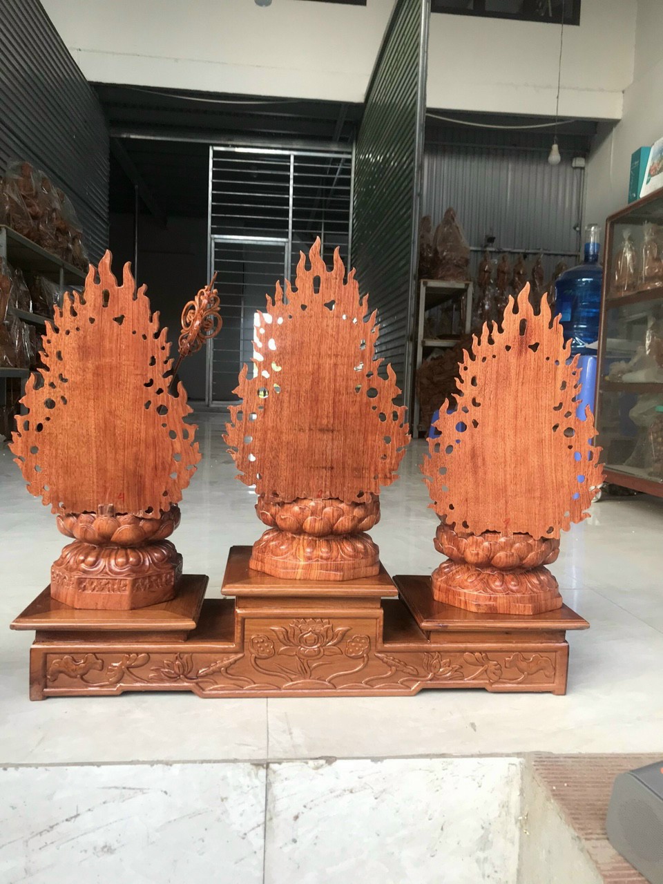 _ Bộ tượng phật tam thánh được làm bằng chất liệu gỗ hương đá tự nhiên 100% _ Kích thước cao 50×25×25cm ,tính cả lá chắn hòa quang sau lưng là cao 60cm _ Bộ