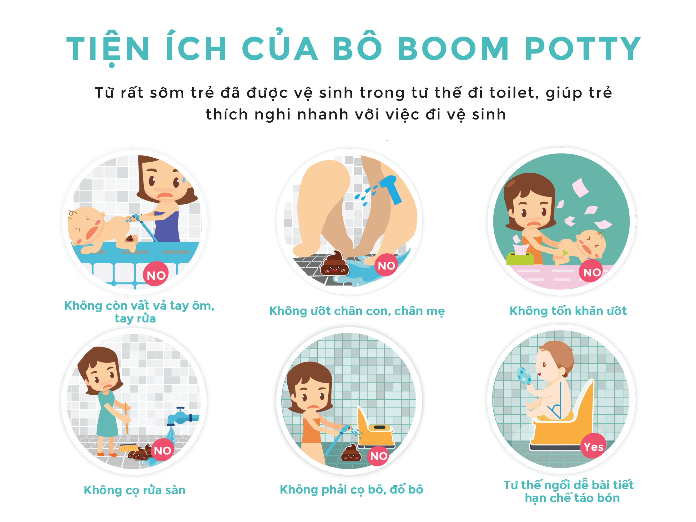 • Bô giúp rửa cho trẻ DỄ DÀNG sau khi trẻ ị (kể khi ra bỉm), sử dụng như miếng kê bồn cầu (ị trực tiếp trên toilet).