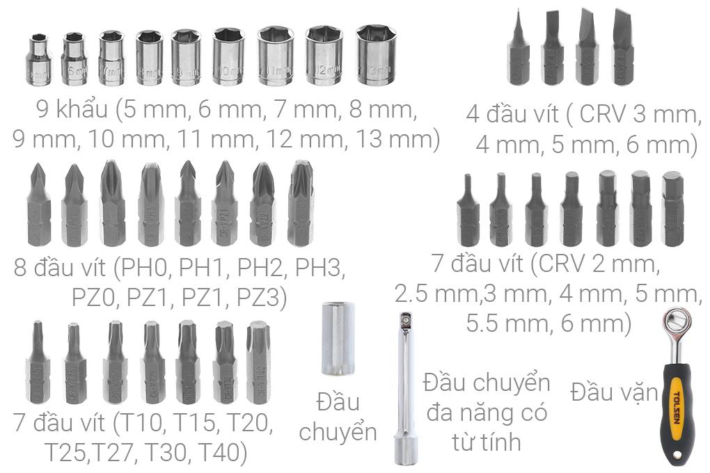 Dụng cụ TOLSEN chuyên cung cấp các mặt hàng như: dụng cụ cơ khí, vật dụng PPE, dụng cụ chuyên dụng cho ngành điện, vật dụng đo lường, túi đựng chuyên dụ Các sản phẩm của Tolsen đều trải qua quá trình nghiên cứu kỹ lưỡng trước khi đưa vào sản xuất, đáp ứng đầy đủ các tiêu chuẩn về mặt vật liệu, thiết kế, tính ứng dụng, giá cả. Tiếp đó, đội ngũ chuyên viên sẽ tiến hành kiểm tra nghiêm ngặt chất lượng sản phẩm đầu ra về các yếu tố như: độ cứng, vật liệu cách nhiệt, mẫu mã sản phẩm, khả năng cắ trước khi đưa vào thị trường, đặc biệt là quá trình thử nghiệm về độ chống gỉ cao. Công nghệ sản xuất hiện đại và được cải tiến liên tục nhằm đem đến cho khách hàng của Tolsen những mặt hàng dụng cụ cầm tay đạt chuẩn, cải thiện chất lượng công việc một cách tối ưu. Dụng cụ TOLSEN ngày càng cung cấp nhiều sản phẩm đa dạng và phong phú hơn.