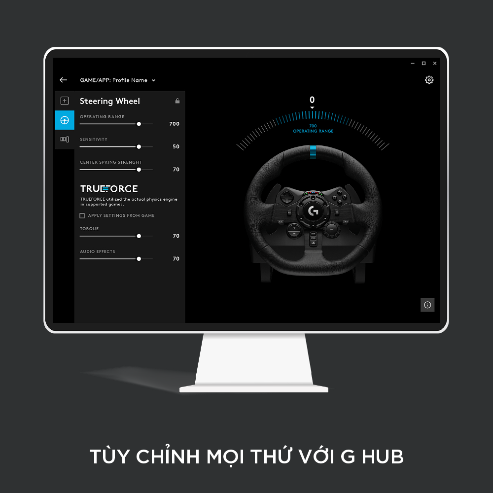 Mua tại TiktokMÔ TẢ SẢN PHẨM Logitech G923 là vô lăng đua xe hiệu suất cao, cách mạng hóa trải nghiệm đua xe siêu thực. Được thiết kế lại để hỗ trợ hệ thống phản hồi lực, Logitech G923 có tính năng TRUEFORCE mới nhất, mang đến tính chân thực chưa từng có bằng cách cung cấp cho người lái nhiều thông tin hơn về cấu tạo xe, đường đua và các tác động vật lý khác: độ bám của lốp, hệ thống treo, trọng lượng, mã lực, thậm chí cả âm thanh cộng hưởng của động cơ đều được cảm nhận ngay lập tức và chính xác qua vô lăng. Cảm nhận các pít-tông đang bơm, tiếng sỏi lạo xạo và mỗi lần chuyển số, trôi và quay vòng như chưa từng có trước đây. CÁC ĐẶC ĐIỂM NỔI BẬT Công nghệ phản hồi lực TRUEFORCE