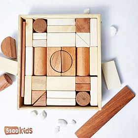 Bộ xếp khối hình học 99 chi tiết bằng gỗ bao gồm 99 miếng ghép khác nhau, có đủ các loại hình khối như khối vuông, chữ nhật, hình trụ, …cho bé kiến tạo những