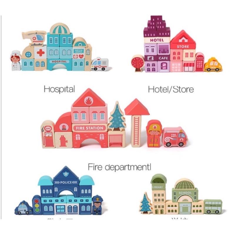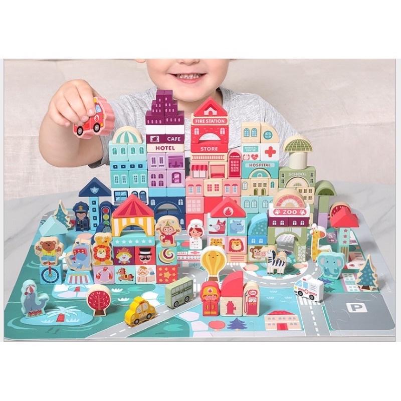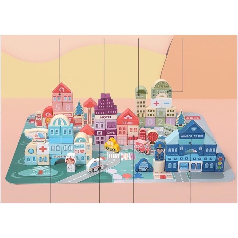 ✨Bộ xếp hình khối mô hình thành phố thu nhỏ bằng gỗ, có tranh ghép nền, giúp bé tăng khả năng sáng tạo