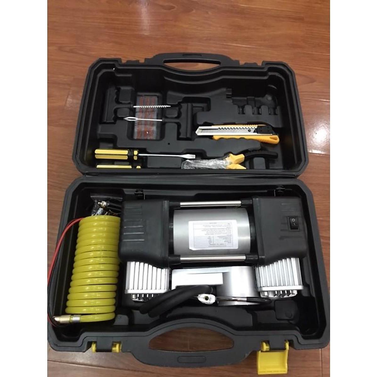 Bơm Ô Tô 2 Xi Lanh Mã Lực Lớn Siêu Khỏe Có Hộp Nhựa - Bơm oto 2 xilanh Bơm lốp 2 xi lanh, siêu khỏe, tiết kiệm thời gian. - Có đồng hồ hiển