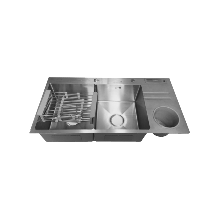 Chậu có thiết kế 2 hố cân Chậu rửa bát với thép cao cấp, siphong nhập tư châu Âu Dung tích chứa lớn với độ sâu bồn tới 190mm Dễ dàng dọn dẹp và lau