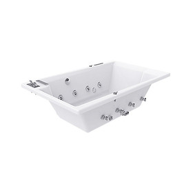 Mua tại Tiktok· Material: Acrylic · Size: 1800x1500x630 mm · With: Luxery massage system(water flow+Bubble Massage), 6 back hole; 3 set pop Faucet; LED UnderWater Light; Control Panel BTU 3.0; Heater; Mental Frame; 1 pc Pillow; ABS Pop-up Waste Set; · 712B-B25823D-17B311X2A1A1