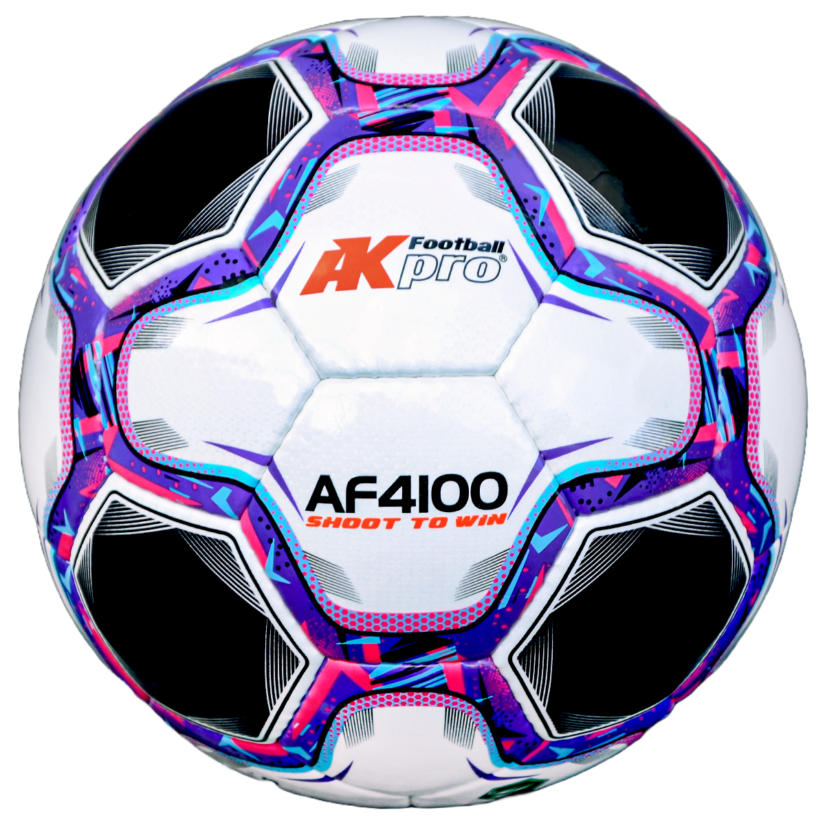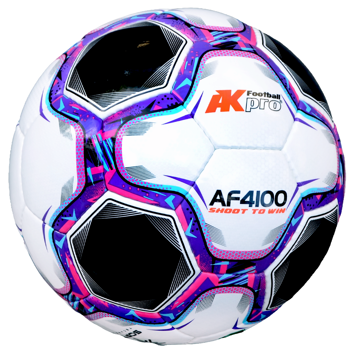 THÔNG TIN SẢN PHẨM Mã sản phẩm: AF4100 Size: 5 Chuyên chơi: Sân 7 - sân 11 Số miếng ghép: 32 Màu: Trắng - Đen - Tím/Hồng/Xanh Sản xuất tại: Pakistan Chất liệu: Da Maracana