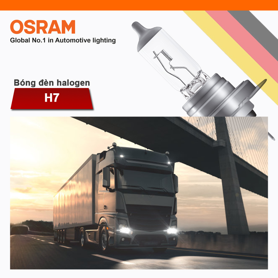 - Bóng Đèn Halogen OSRAM Original H7 64215 24V 70W được chế tạo bằng thủy tinh cao cấp đạt tuổi thọ sử dụng cao giúp hỗ trợ chiếu sáng hiệu quả trên những chặng đường dài