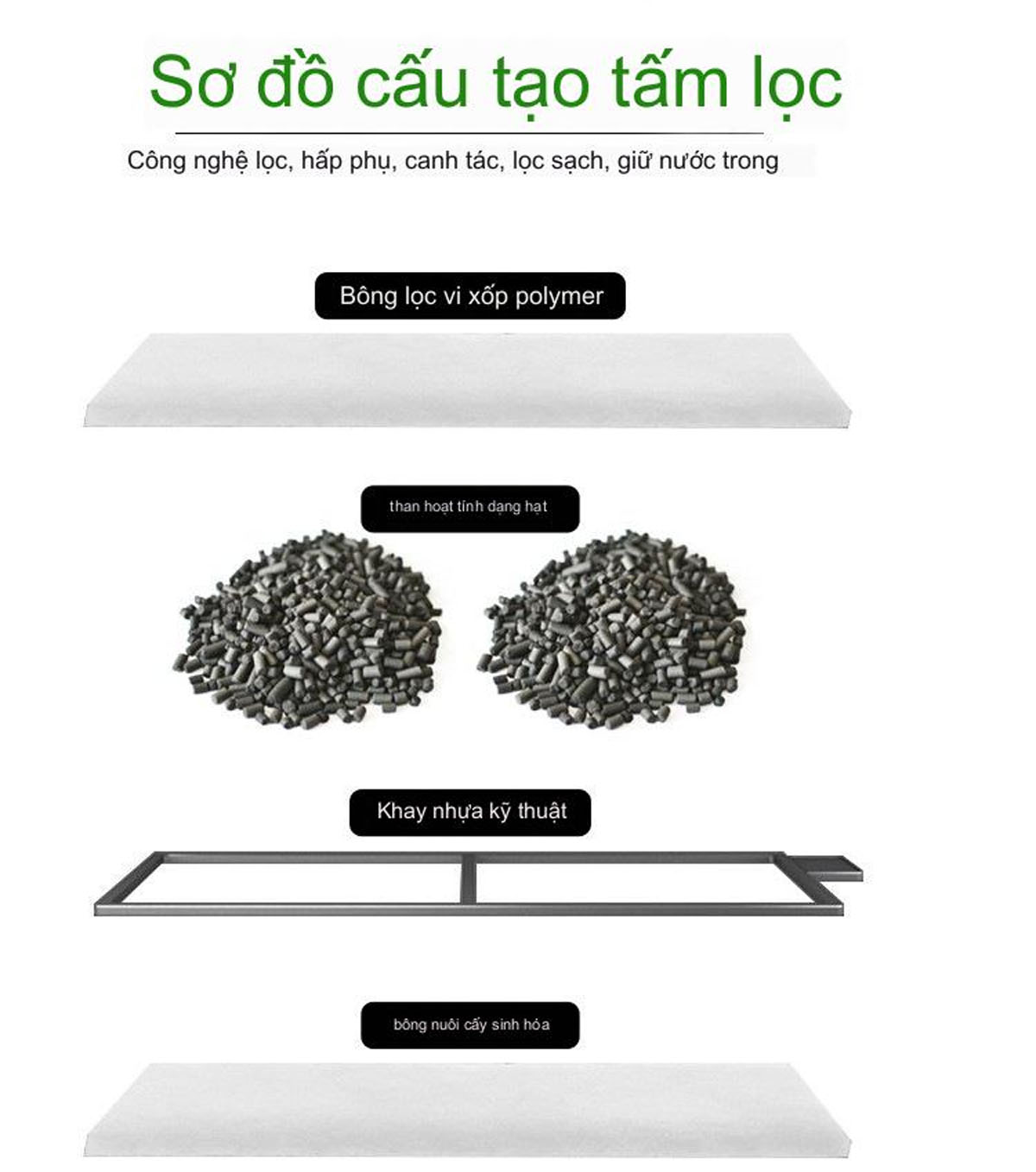 - Thao tác chỉ cần gắn bông lọc vào hộp lọc thác nước bể cá là dùng được