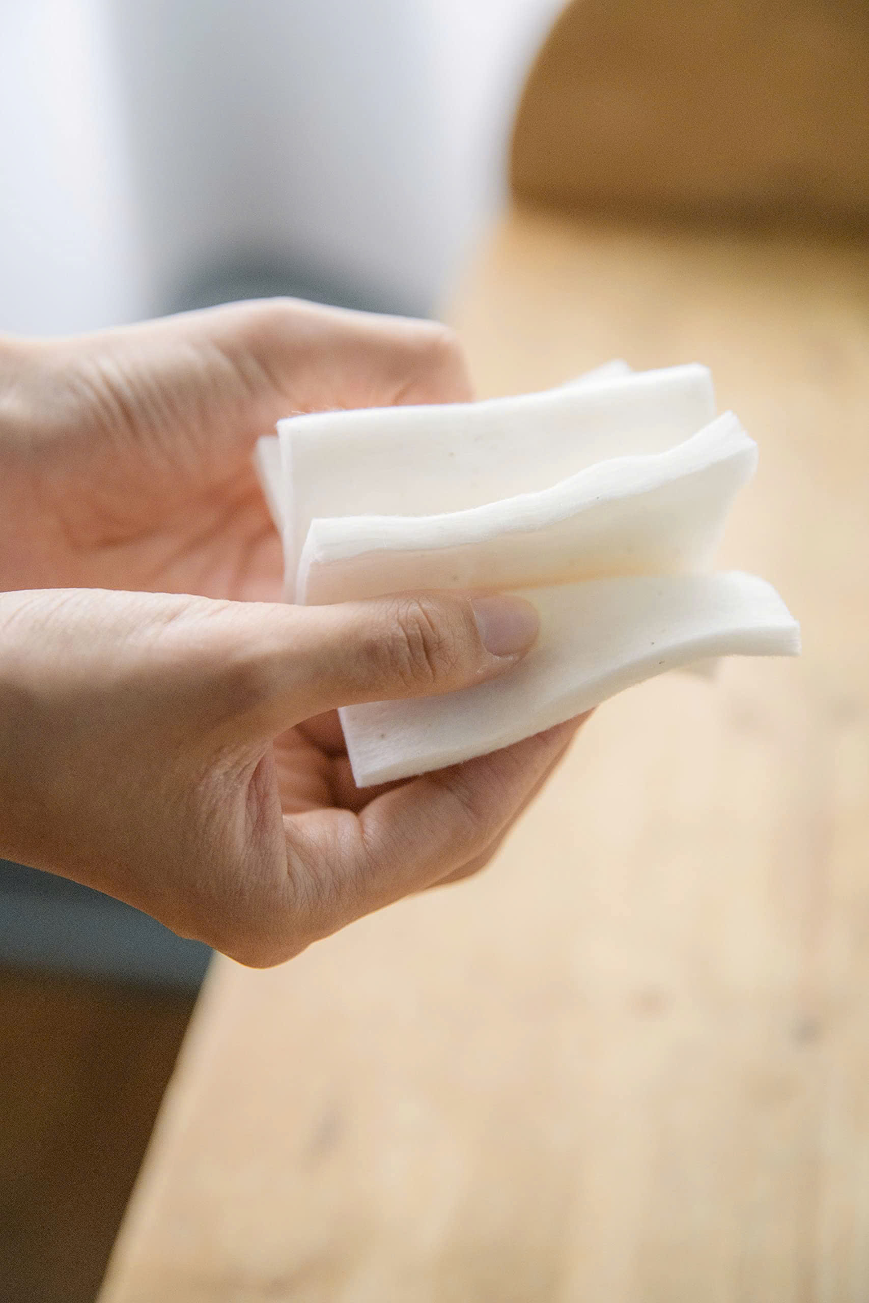 CÔNG DỤNG Thấm hút nhanh và giữ nước tốt Không để lại xơ bông Phù hợp nhiều loại da HƯỚNG DẪN SỬ DỤNG Bước 1: Thấm đều nước tẩy trang vào miếng bông tẩy