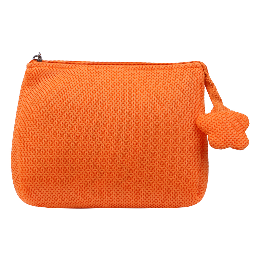 được làm từ chất liệu vải air mesh 100% polyester, mềm mại, dễ dàng vệ sinh. Kích thước nhỏ gọn, khóa kéo bông mai nổi bật chiếc túi.