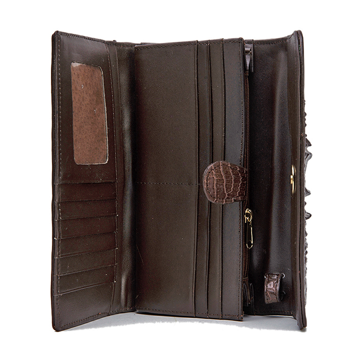 Ví/Bóp nữ da bò Huy Hoàng vân cá sấu lớn 3 gấp màu nâu đỏ 3154