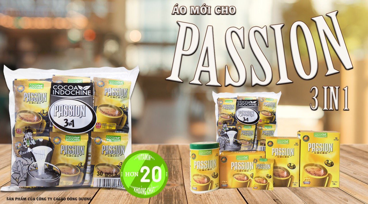 ✨Bột Cacao Hòa Tan Passion 3 In 1 Cocoa Indochine (Hộp 15 Gói x 16g)