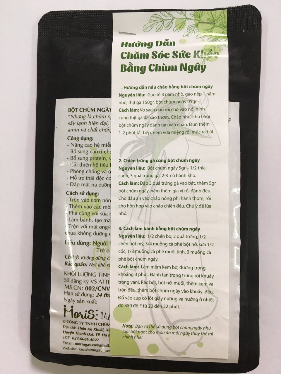 Những lá chùm ngây tươi được làm sạch và xử lý bằng phương pháp sấy lạnh hiện đại, giúp giữ nguyên hàm lượng dinh dưỡng, các vitamin và khoáng chất trong chùm ngây và có thể bảo quản trong thời gian dài mà không cần thêm bất kỳ chất phụ gia nào.
