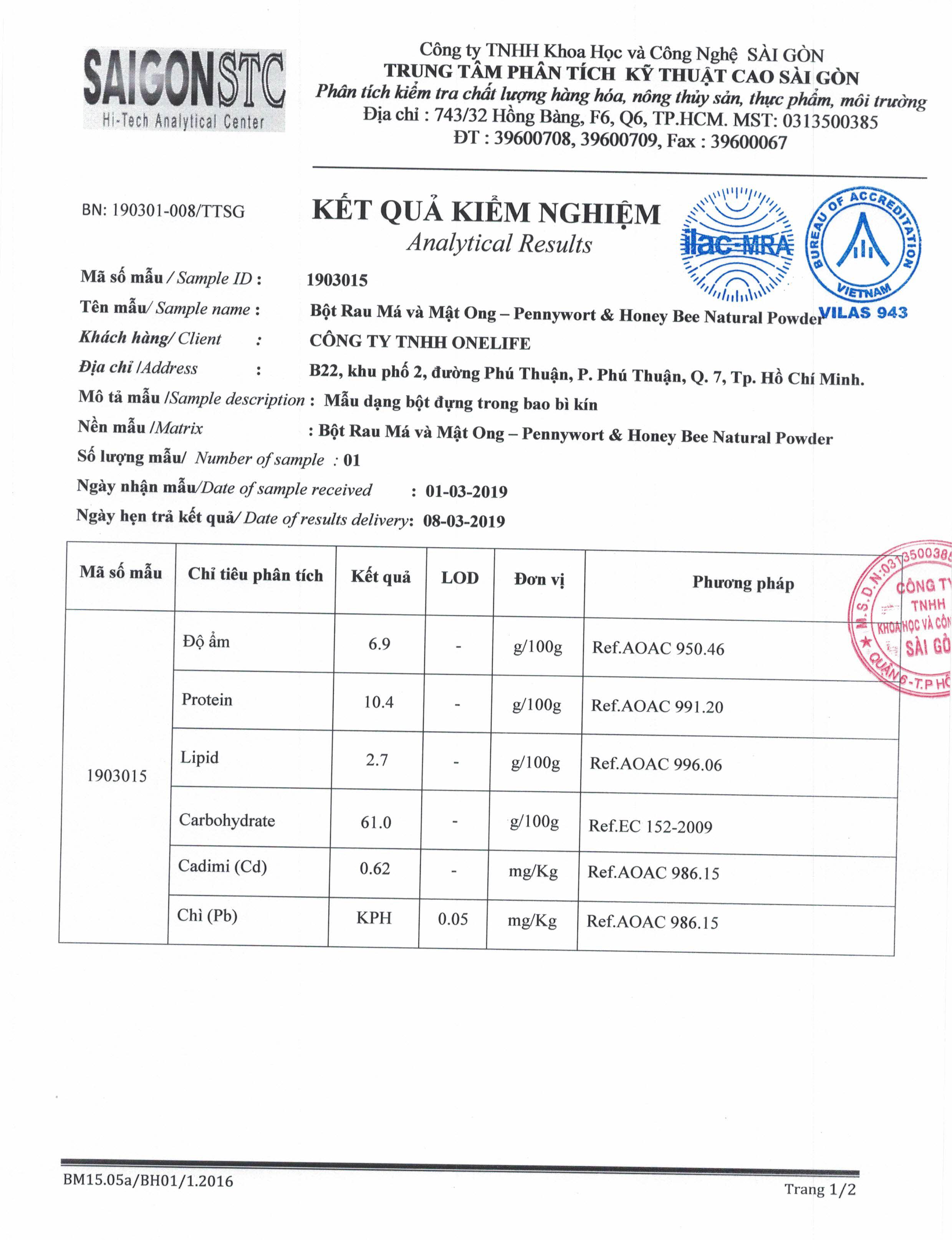 ✨Bột Mật Ong Rau Má Tự Nhiên OneLife (Hộp 50gr)