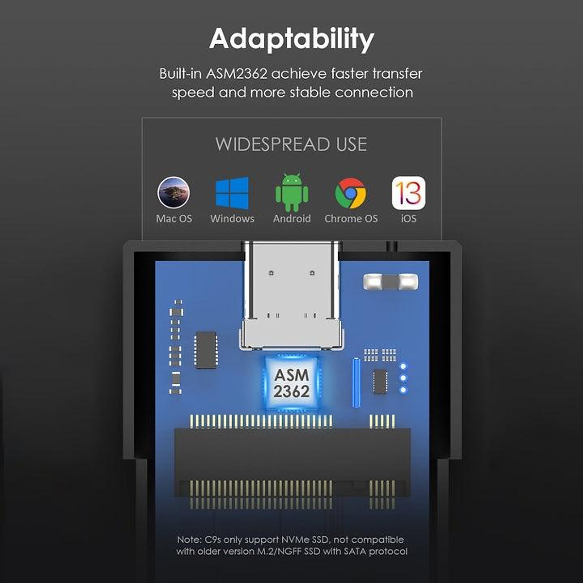 THÔNG SỐ KỸ THUẬT : Tính năng Truyền dữ liệu Giao tiếp Đầu ra: USB3.1 Type-C Tốc độ USB3.1 GEN2 10Gbps. Tương thích Hỗ trợ SSD: M.2 M-Key/B&M-Key SSD NVME 2230,2242,2260 và 2280 Chất