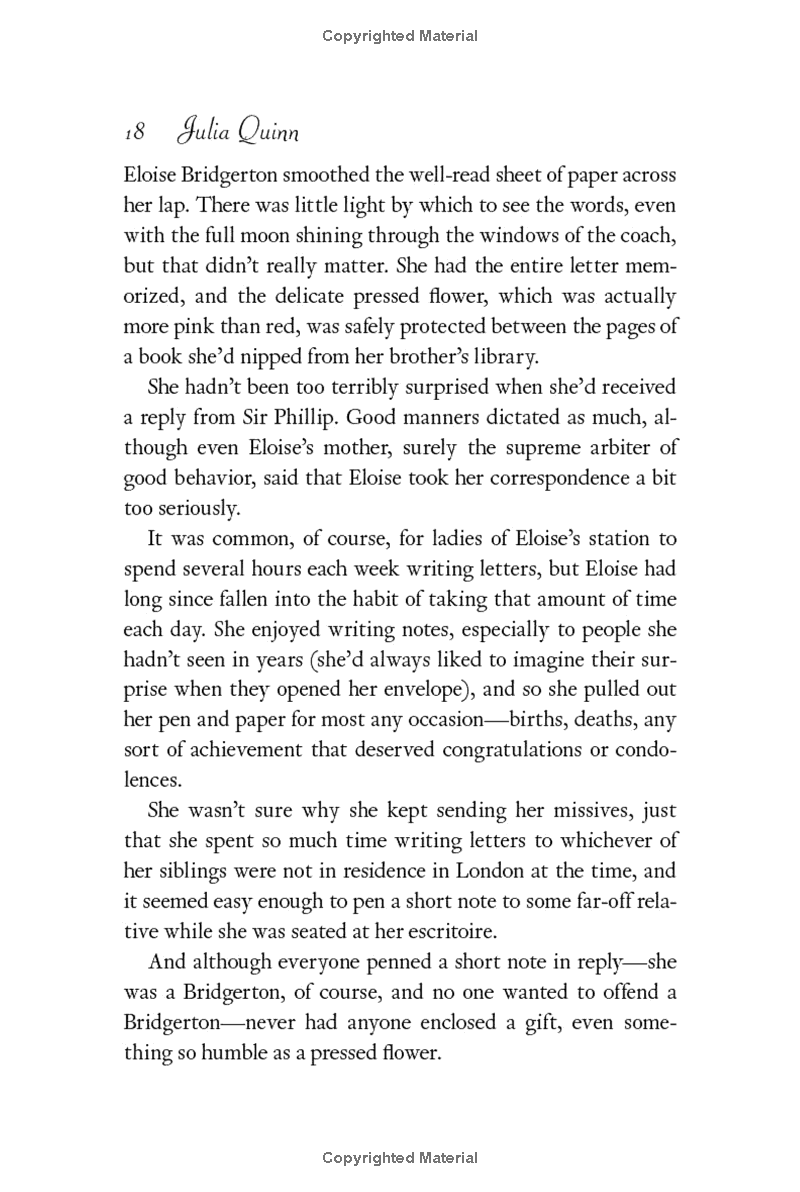 Did he think she was mad? Eloise Bridgerton couldn't marry a man she had never met! But before she knew it, she was in a hired carriage in the middle of the night, on her way to meet the man she hoped might be her perfect match.