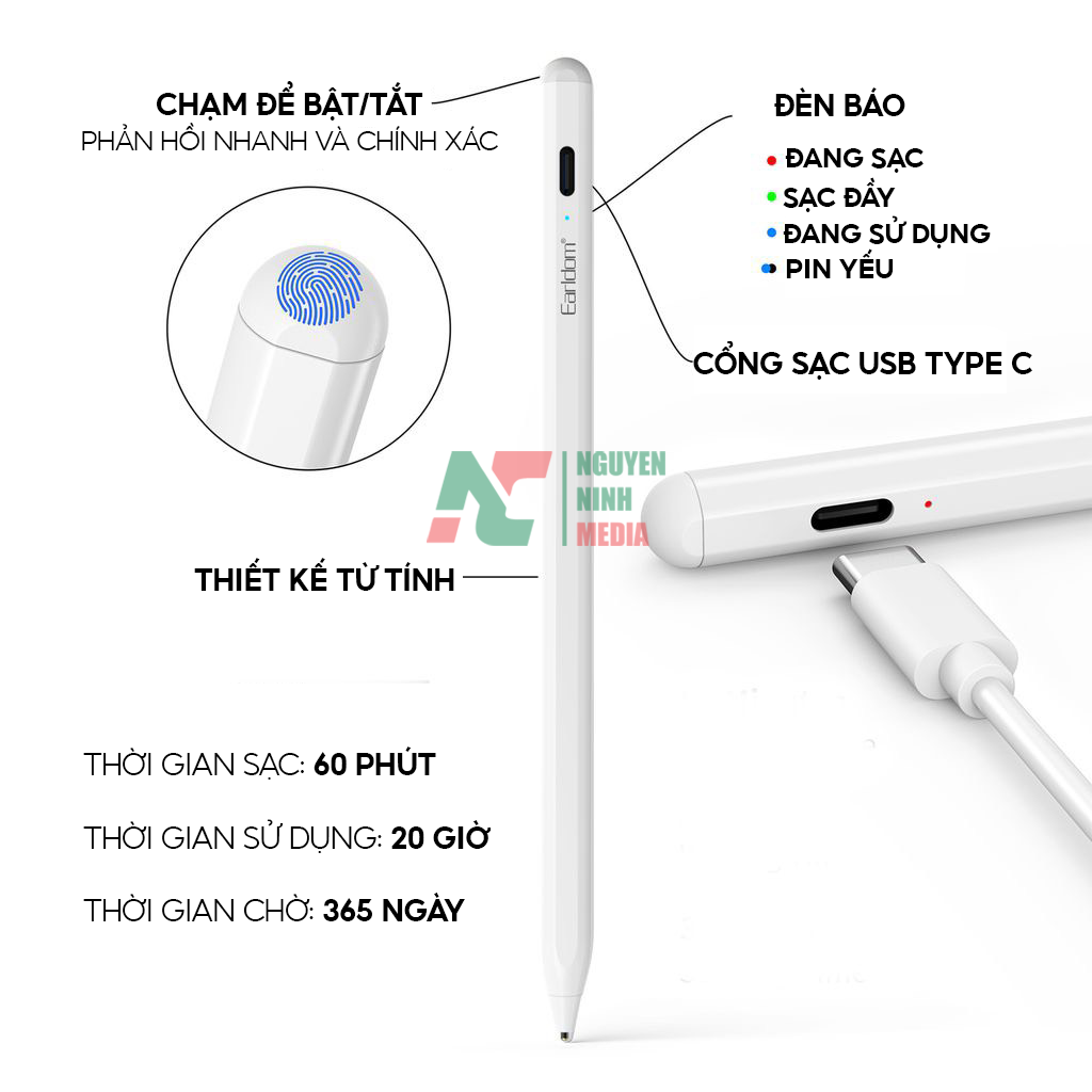 TÍNH NĂNG CƠ BẢN: - Bút cảm ứng dùng cho mọi màn hình cảm ứng điện dung. Tương thích tốt với tất cả các smartphone và tablet hiện này từ Android cho đến iOS .