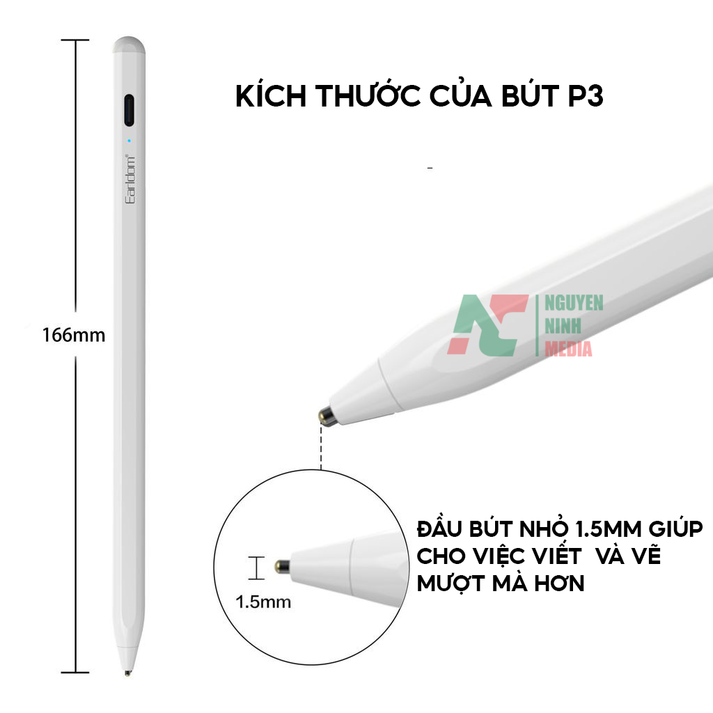 Hãng Sản Xuất: Earldom Model: ET-P3 + Công nghệ cảm ứng: Điện dung + Màu sặc: Trắng + Chất Liệu: Hợp kim nhôm + Cổng Sạc: Type C - Đây là dòng sản phẩm dùng