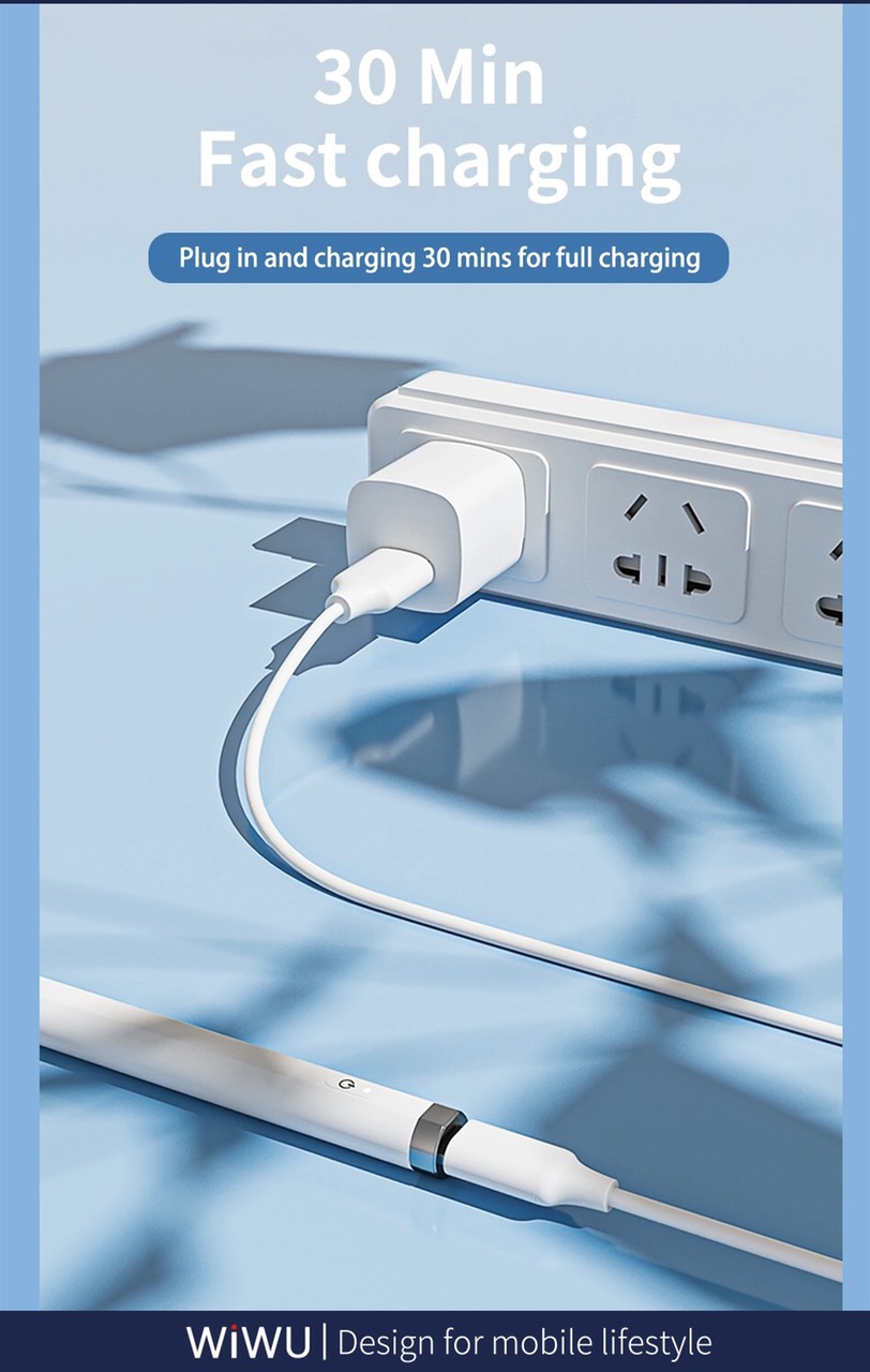 Bút Cảm Ứng WIWU Pencil A01 dòng bút mới nhất đến từ WiWU tương thích tốt cho các dòng ipad hiện nay. WIWU Pencil A01 với cổng sạc USB-C và hỗ trợ cảm biến chống