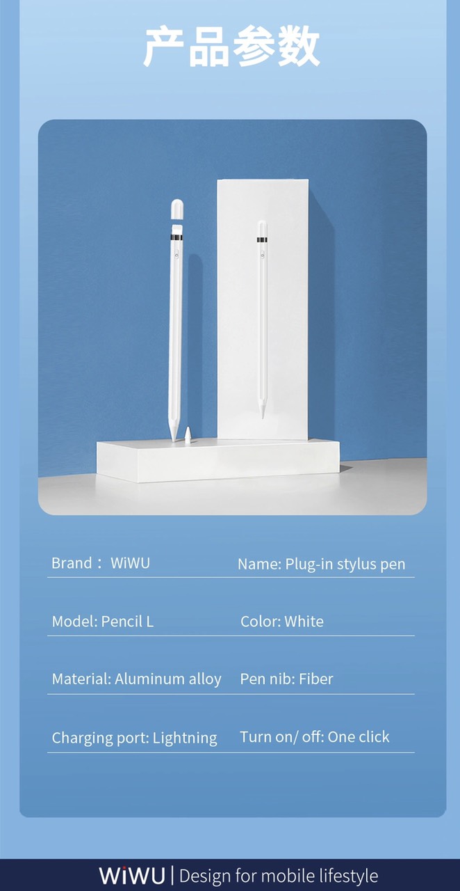 Bút Cảm Ứng Wiwu Pencil W Dành Cho iPad Pro và các dòng iPad / iPad Mini Sạc Không Dây Từ Tính Mô tả sản phẩm - Thương Hiệu : WIWU - Chất liệu: Hợp