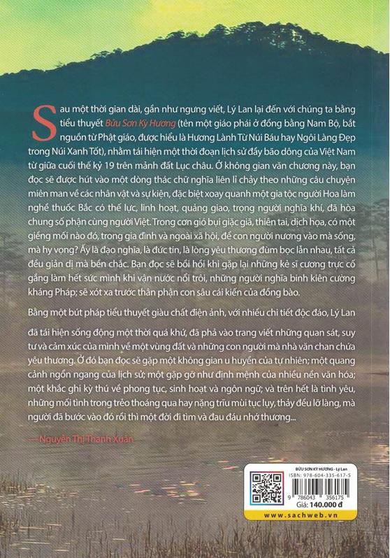 Sau một thời gian dài, gần như ngưng viết, Lý Lan lại đến với chúng ta bằng tiểu thuyết Bửu Sơn Kỳ Hương (tên một giáo phái ở đồng bằng Nam Bộ, bắt nguồn từ Phật giáo, được hiểu là Hương Lành Từ Núi Báu hay Ngôi Làng Đẹp trong Núi Xanh Tốt), nhằm tái hiện một thời đoạn lịch sử đầy bão dông của Việt Nam từ giữa cuối thế kỷ 19 trên mảnh đất Lục châu. Ở không gian văn chương này, bạn đọc sẽ được hút vào một dòng thác chữ nghĩa liên lỉ chảy theo những câu chuyện miên man về các nhân vật và sự kiện, đặc biệt xoay quanh một gia tộc người Hoa làm nghề thuốc Bắc có thế lực, linh hoạt, quảng giao trọng người nghĩa khí, đã hòa chung số phận cùng người Việt. Trong cơn gió bụi giặc giã, thiên tai, dịch họa, có một giềng mối nào đó, trong gia đình và ngoài xã hội, để con người nương vào mà sống, mà hy vọng? Ấy là đạo nghĩa là đức tin, là lòng yêu thương đùm bọc lẫn nhau, tất cả đều giản dị mà bền chắc. Bằng một bút pháp tiểu thuyết giàu chất điện ảnh, với nhiều chi tiết độc đáo, Lý Lan đã tái hiện sống động một thời quá khứ, đã phả vào trang viết những quan sát, suy tư và cảm xúc của m.ình về một vùng đất và những con người mà nhà văn chan chứa yêu thương. Ở đó bạn đọc sẽ gặp một không gian u huyền của tự nhiên; một quang cảnh ngổn ngang của lịch sử; một gặp gỡ như định mệnh của nhiều nền văn hóa; một khắc ghi kỳ thú về phong tục, sinh hoạt và ngôn ngữ;
