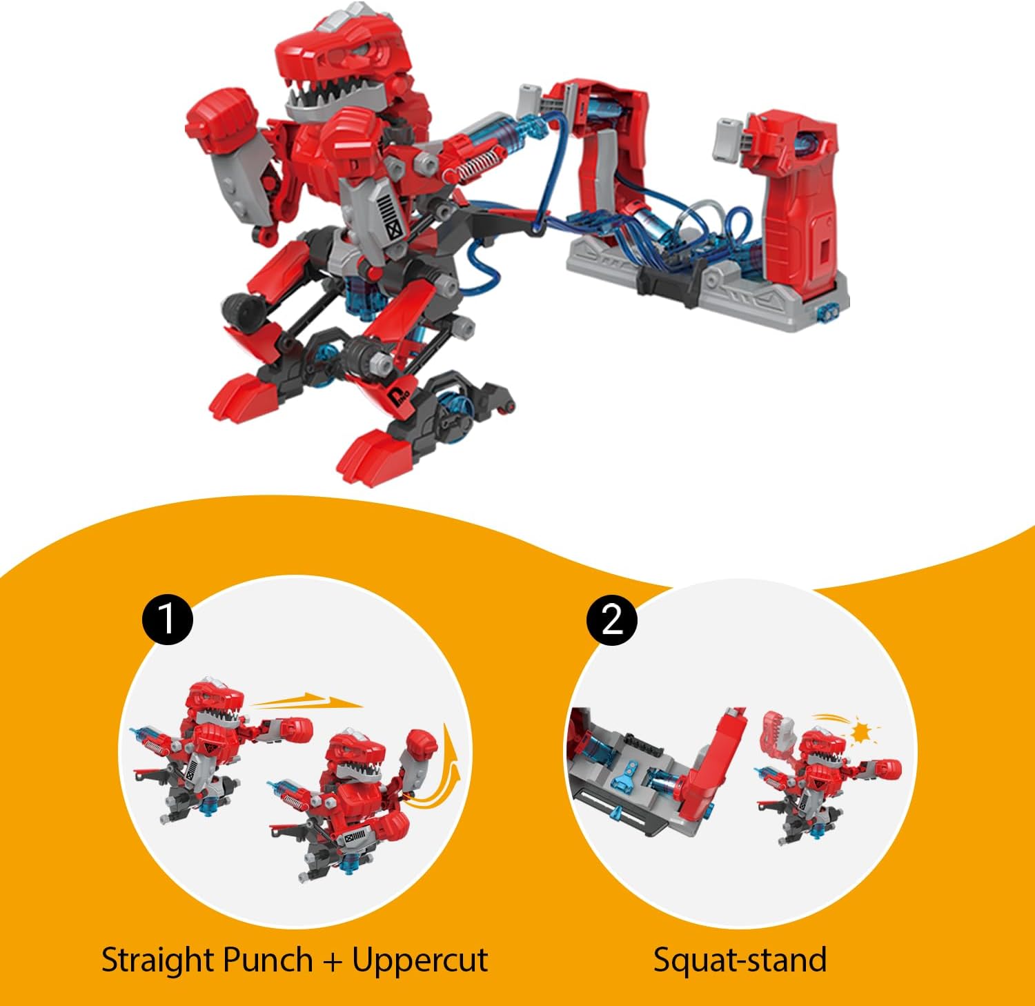 Mua tại TiktokBộ đồ chơi lắp ráp 2 chú khủng long đấu boxing, hoạt động bằng hệ thống thủy lực chỉ cần nước, không dùng pin. Khủng long có thể nghiêng mình né đòn, xoay người tấn công, tung đấm thẳng, đấm móc và đứng ngồi linh hoạt. Người chơi điều khiển khủng long thi đấu đối kháng, ghi điểm bằng cách hạ gục đối thủ. Bộ sản phẩm giúp trẻ phát triển kỹ năng lắp ráp, tư duy cơ học và phản xạ nhanh thông qua trò chơi đối kháng đầy kịch tính.