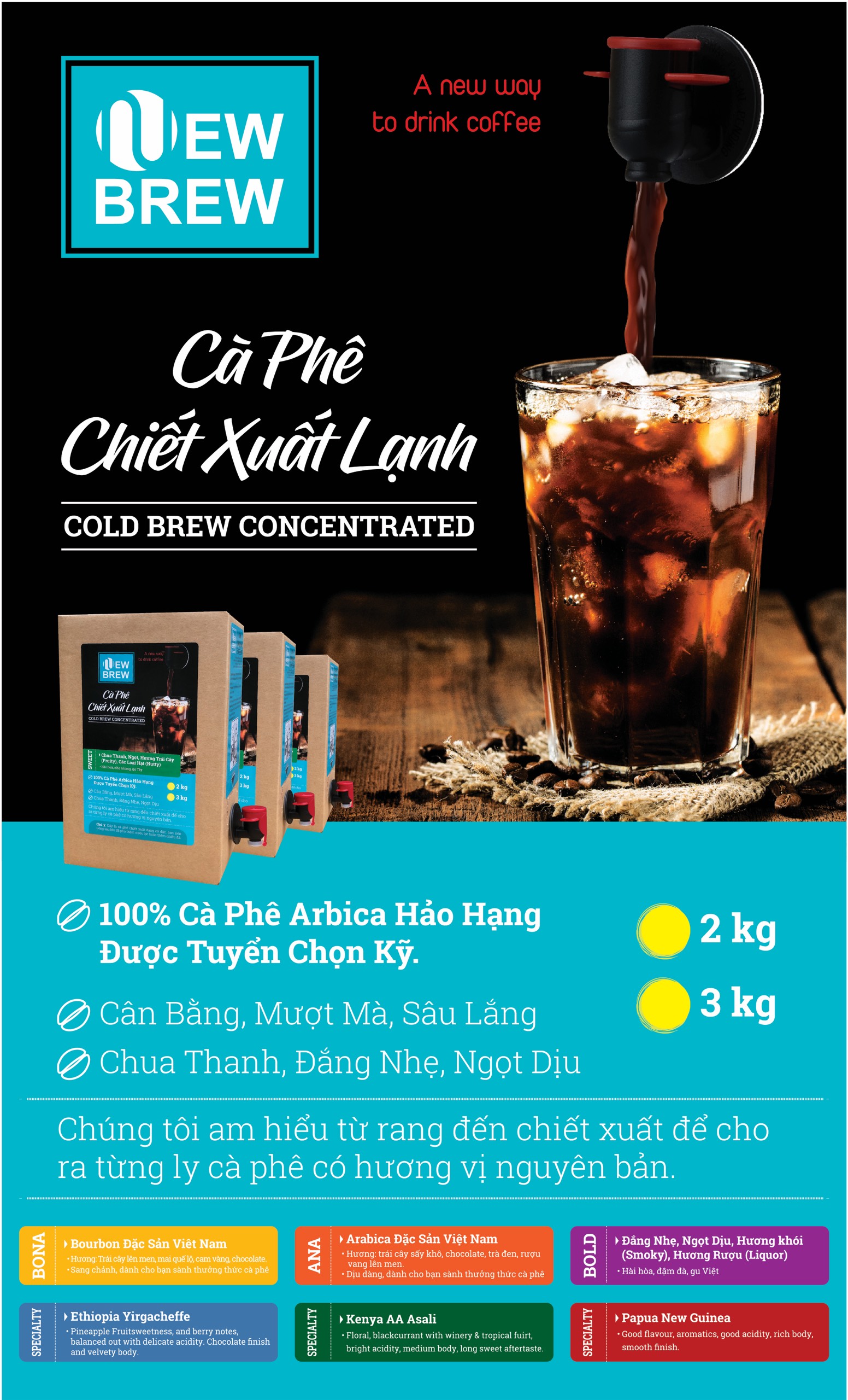 ✨Cà phê chiết xuất lạnh New Brew, Cold Brew, pha sẵn NewBrew BOLD, hộp 2 Kg