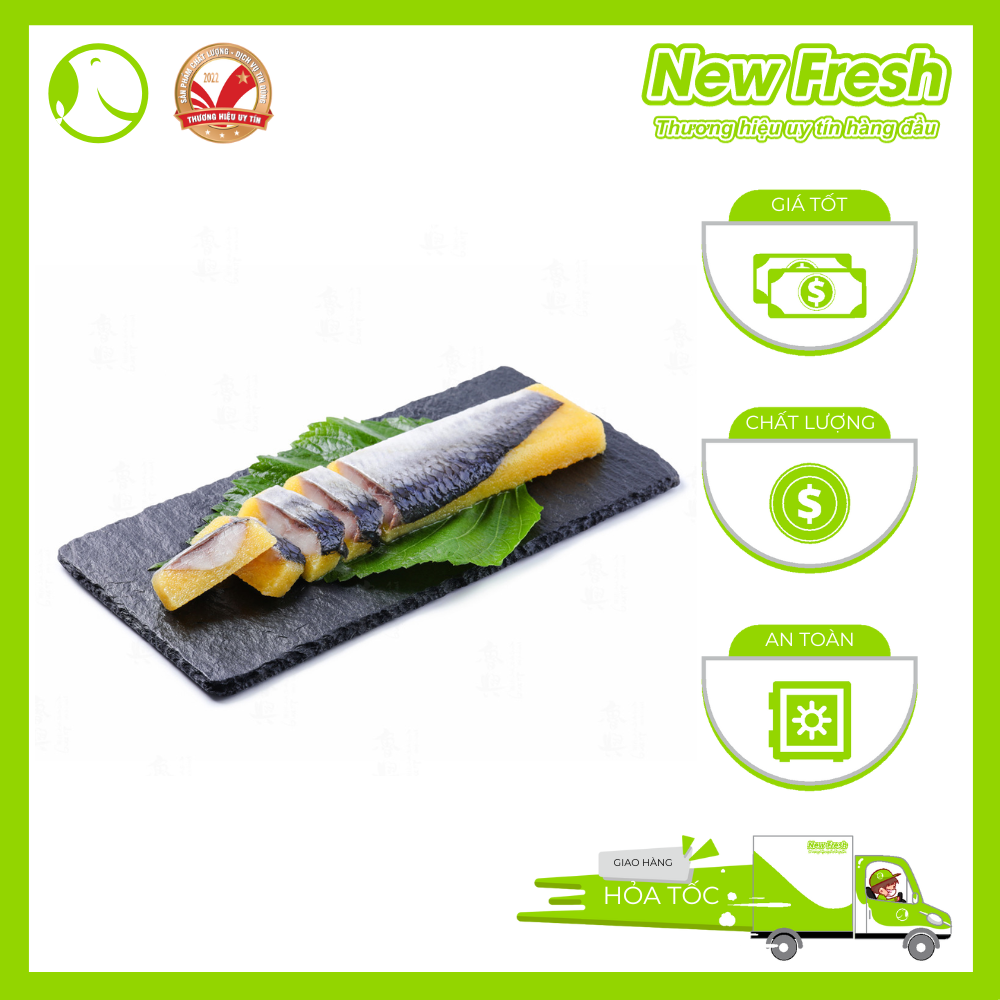 Với sản phẩm tươi sống, trọng lượng thực tế có thể chênh lệch khoảng 10%. Tên sản phẩm: Cá trích ép trứng xanh Xuất xứ: Nhật Bản Thành phần: Cá trích , trứng cá chuồn,..