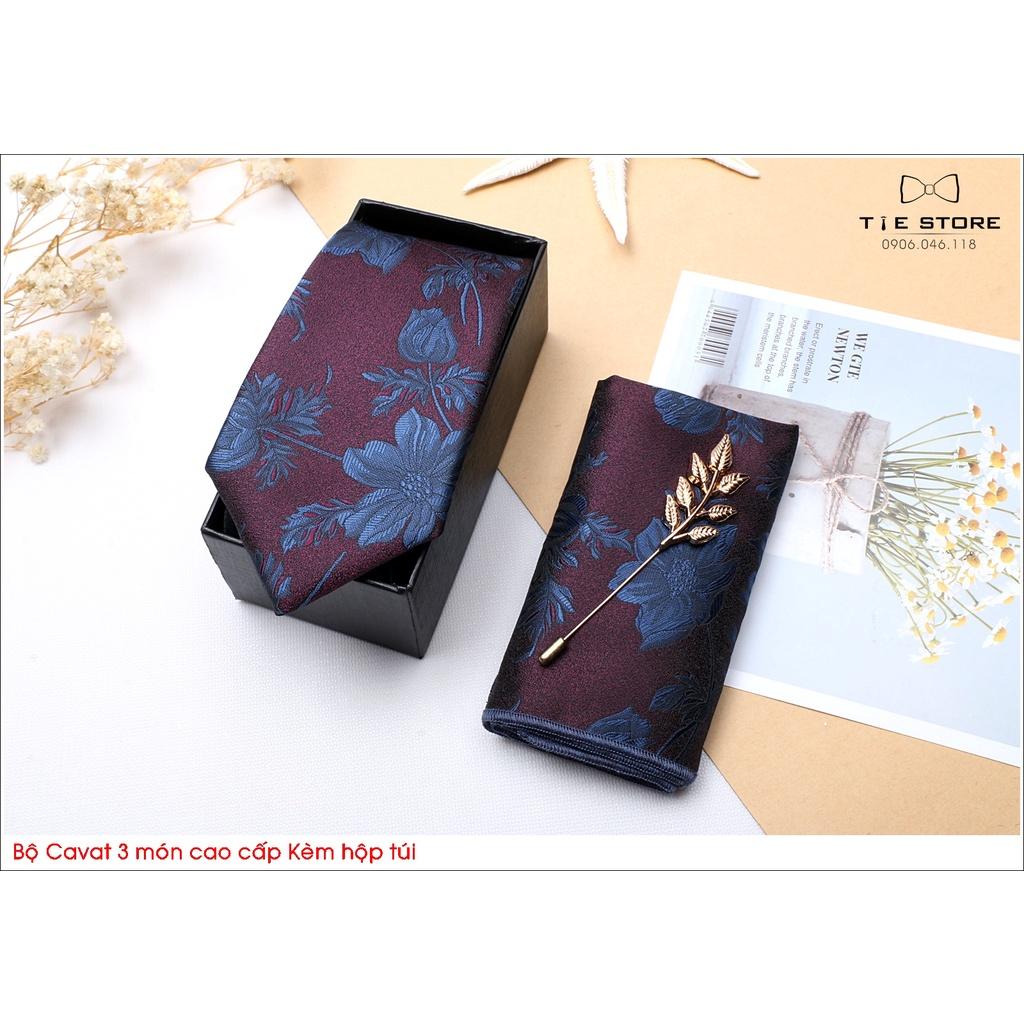 ✨Ca Vat bộ 3 món kèm hộp túi xách cao cấp, quà tặng chú rể, Cavat Hoa đỏ mận