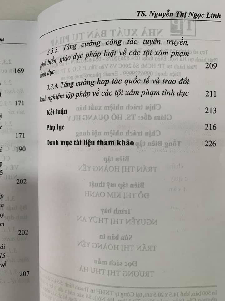 Các tội xâm pham tình dục trong luật hình sự Việt Nam Tác giả: TS. Nguyễn Thị Ngọc Linh Phát hành: 08/2019 Nhà xuất bản: Tư Pháp Sách dày: 255 trang Khổ 14.5x20.5cm