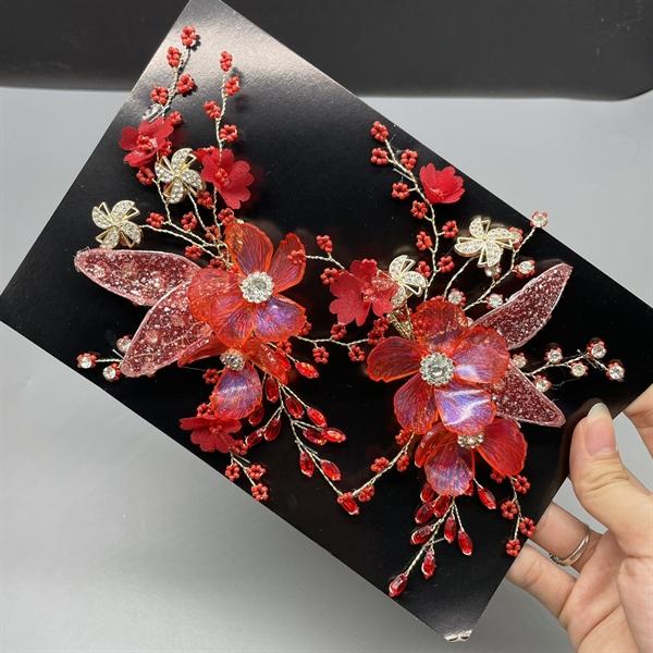 Phụ kiện cưới Giang - cài tóc - cài tóc cô dâu hoa đỏ đính hạt - mẫu mới 2019