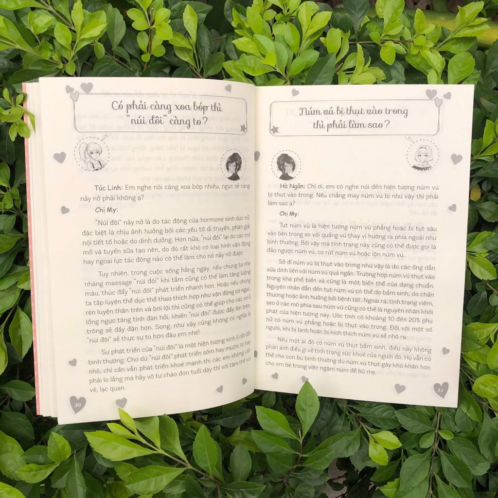 Cuốn sách đề cập đến tất cả những vấn đề về sức khỏe giới tính của tuổi dậy thì. Khi đọc sách, con sẽ cảm nhận được đó chính là những vấn đề gần gũi mà mình đang gặp phải. Sẽ có những loay hoay với lần nguyệt san xuất hiện đầu tiên, phút bối rối với lần đầu chọn áo chíp, những ngây ngô với sự lớn lên của các bộ phận cơ thể khi dậy thì… Biết bao nhiêu điều các con muốn biết, cần biết nhưng lại ngại ngùng không dám hỏi cha mẹ, thầy cô sẽ được trình bày một cách đầy đủ nhất trong cuốn sách này dưới dạng những lời hỏi – đáp giữa chị và em gái.