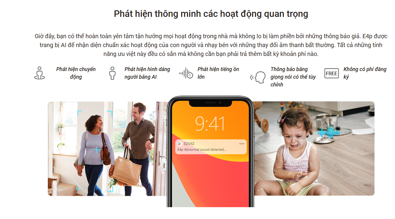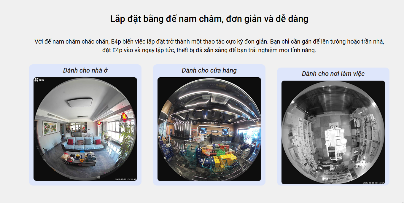 Camera hỗ trợ chế độ xem cận cảnh PiP và chia màn hình đa góc. Bạn có thể chọn chế độ toàn cảnh hoặc tập trung vào khu vực cụ thể. Ứng dụng EZVIZ cho phép điều chỉnh góc nhìn dễ dàng. Tính năng này giúp giám sát linh hoạt, tiện lợi.