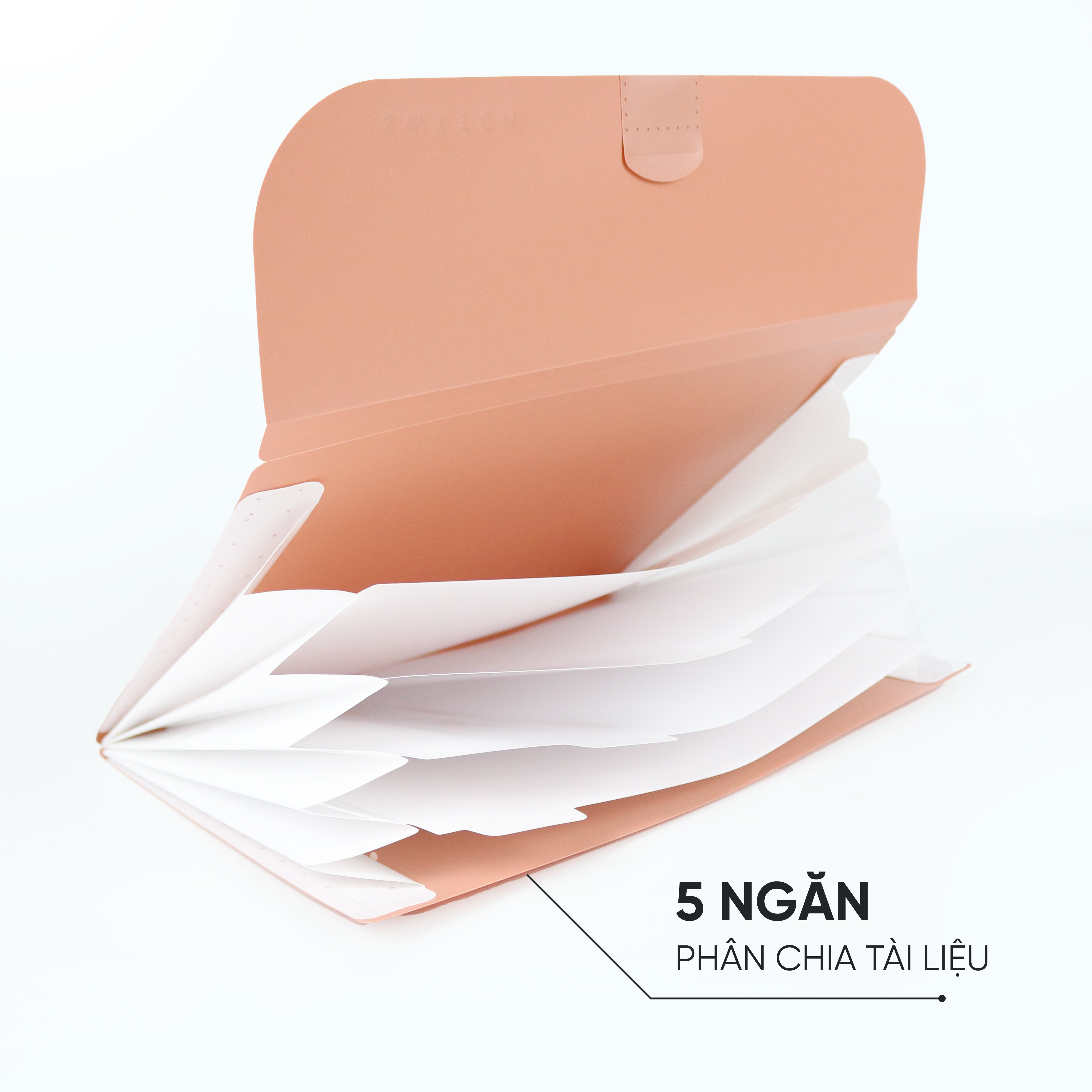 Cặp đựng tài liệu A4 nhiều ngăn AO+ được thiết kế nhỏ gọn, khóa thông minh không cúc giữ giấy tờ luôn được phẳng phiu, 5 ngăn cùng phần gáy co dãn giúp bạn lưu trữ được nhiều giấy tờ hơn.