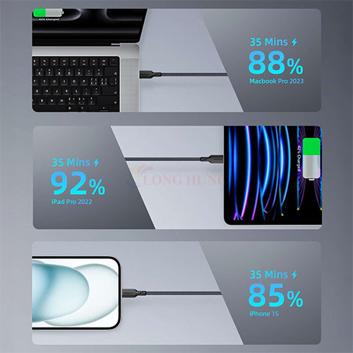 Cáp hỗ trợ công suất sạc nhanh lên đến 100W, cho phép sạc tốc độ tối đa cho nhiều thiết bị khác nhau, đặc biệt là các dòng laptop, tablet và smartphone cao cấp Được