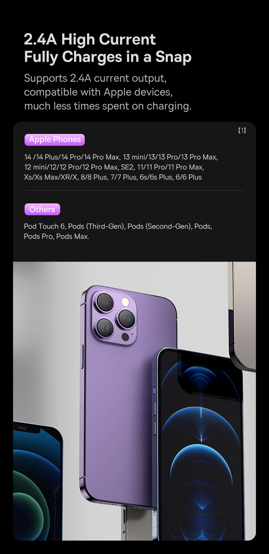 - Là sản phẩm đa năng, sạc được cho nhiều thiết bị cùng lúc, gồm cả dòng Android, TypeC như Samsung, HTC, Xiaomi, Huawei, và cả dòng như iPhone, iPad với chuẩn 8