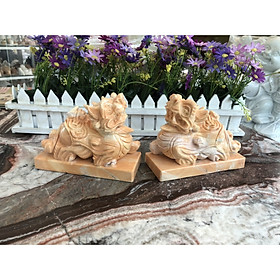 ✨Cặp Tỳ Hưu phong thủy đá cẩm thạch vàng cà rốt có đế - Dài 15 cm