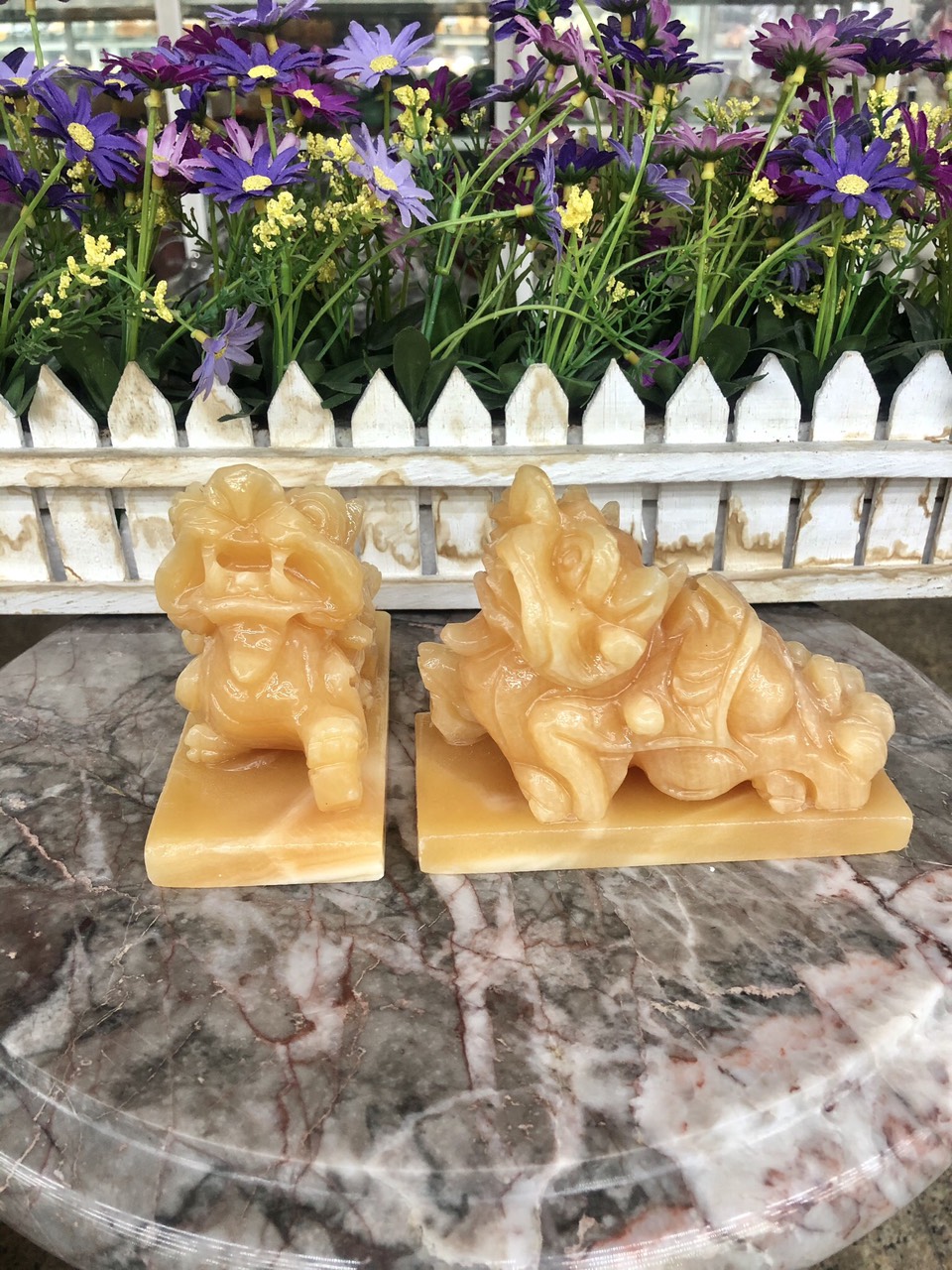 Mua tại TiktokHợp mệnh Thổ - Kim Chất liệu: Đá ngọc hoàng long Kich thước: Dài 12cm x Rộng 6cm x Cao 10cm Khối lượng: 1,6 kg / cặp