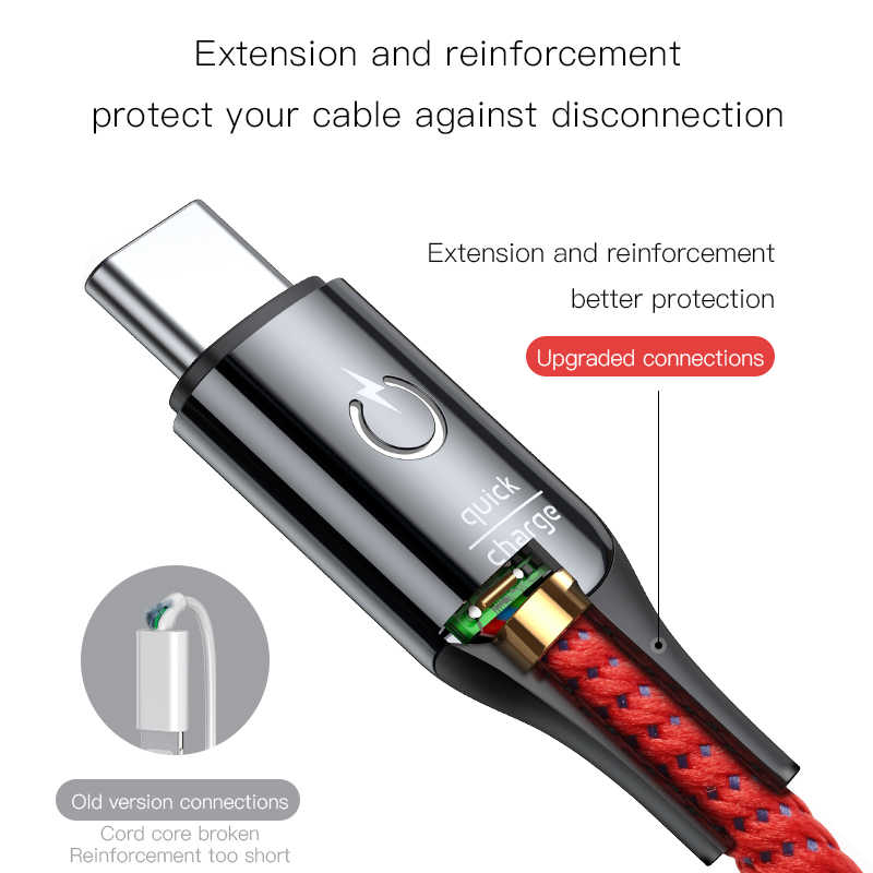 ✨Cáp Type-C tự ngắt Baseus C-shaped Light Intelligent 3A dài 1m - Hàng chính hãng