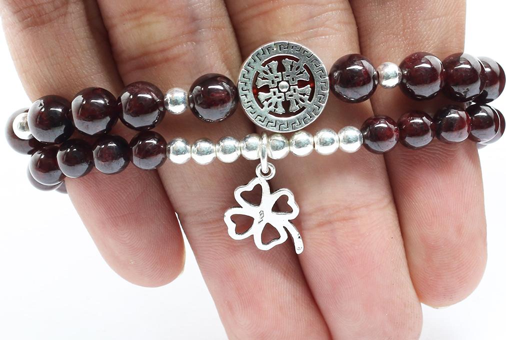 ✨Cặp Vòng Garnet Ngọc Hồng Lựu (6mm) Mix Charm Bạc Ngọc Quý Gemstones VT76