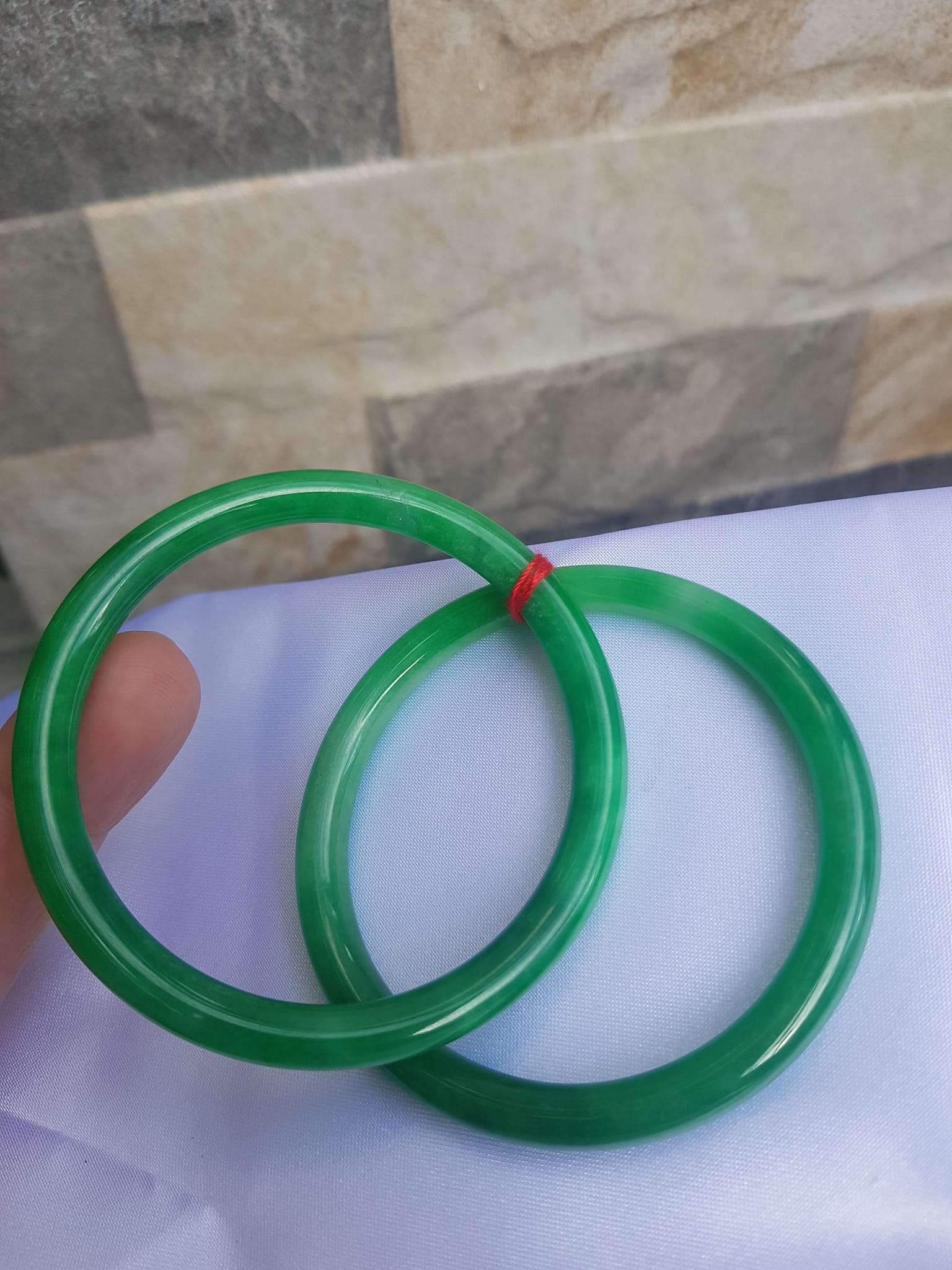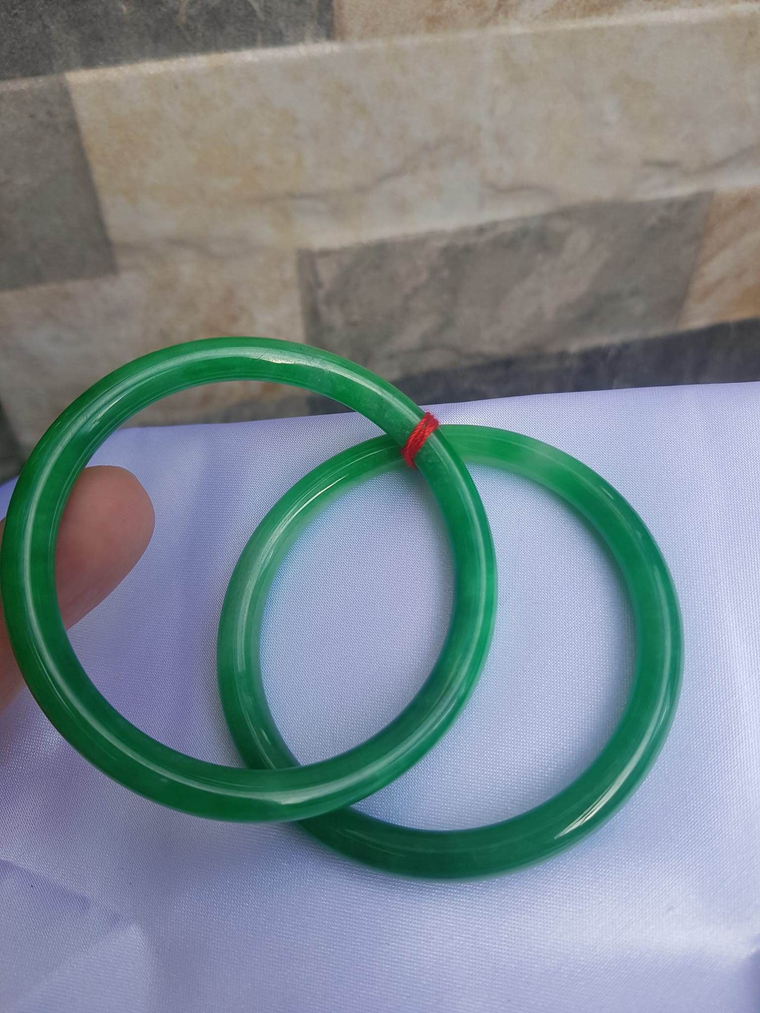 Cặp Vòng Cẩm Thạch tròn 51mm x 6mm Màu xanh ngọc đậm bóng đẹp ạ Nữ mệnh Mộc Hỏa Thủy 50kg - 56kg ạ
