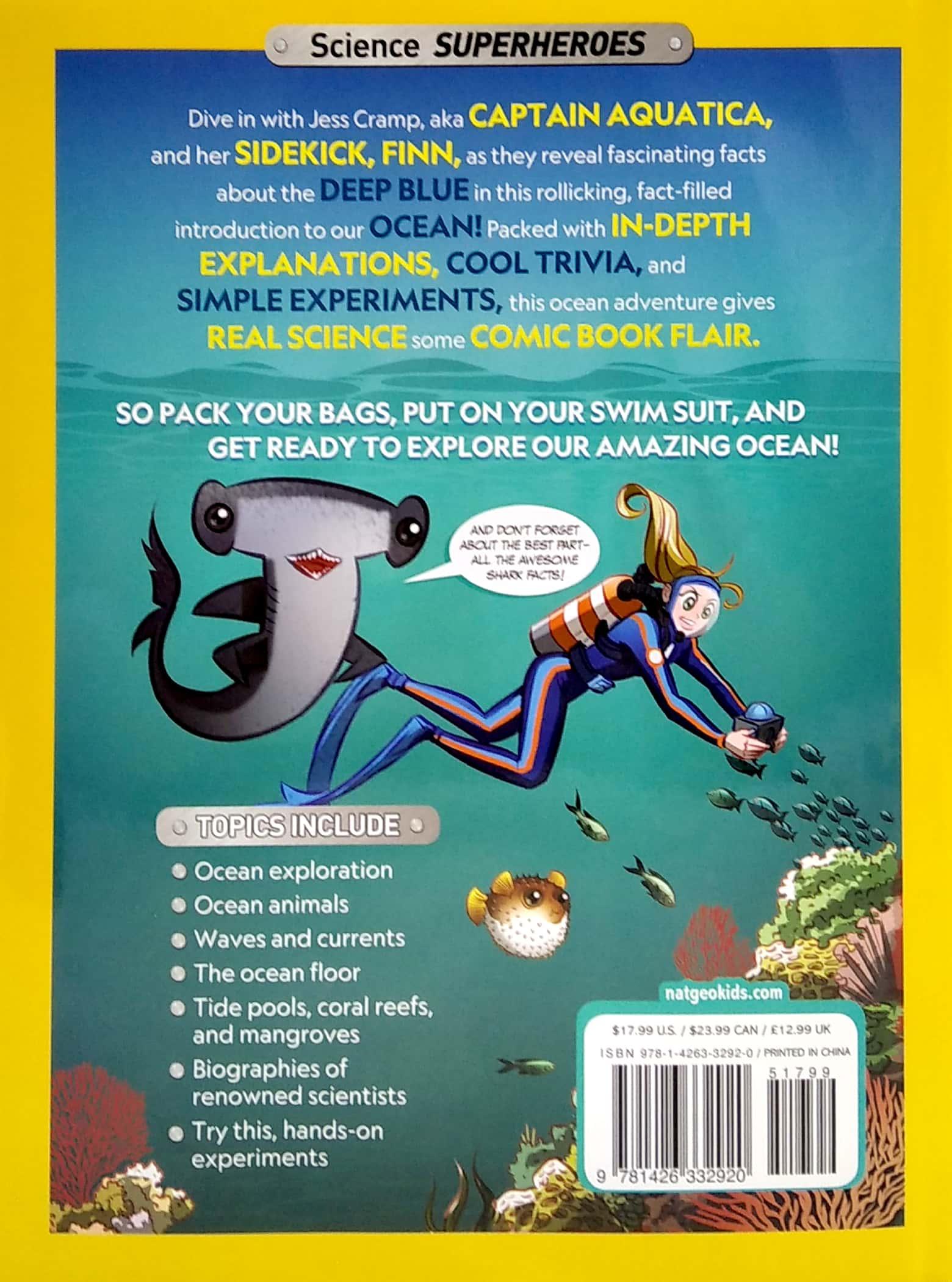 Scientist Jessica Cramp illuminates her work studying sharks and protecting our amazing ocean with in-depth scientific info and comic-book flair. Cramp's conversational and witty explanations will make kids want to dive right in. Colorful side stories in graphic novel-style feature Cramp as character Captain Aquatica, with her sidekick shark, Fin. Together they help make big concepts accessible and interesting to kids of all levels. Amazing photography and cool content draw kids into the subject and story, attracting STEM fanatics and reluctant readers alike.