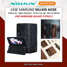 Case bao da chống sốc cho Samsung Galaxy Z Fold 5 trang bị ngăn đựng S-Pen hiệu Nillkin Aoge Leather Cover Case (bảo vệ máy cực tốt, chất liệu da thật cao cấp, thiết kế thời trang cá tính)  TRANG...