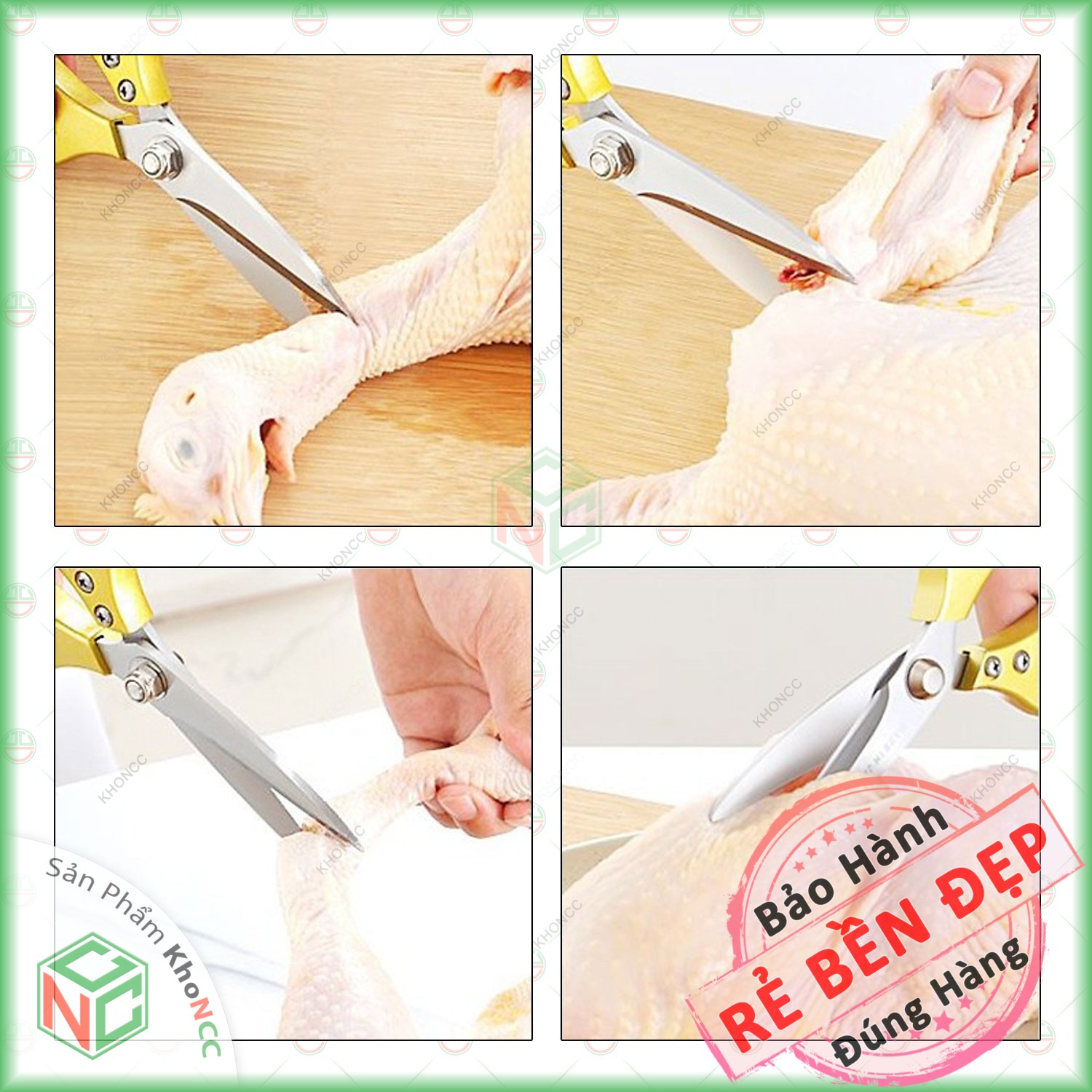 ✨(Cắt Mượt) Kéo Làm Bếp Đa Năng Siêu Phẩm Siêu Sắc KhoNCC Hàng Chính Hãng - Kéo Cắt Gà, Cắt Vịt, Cắt Thịt, Cắt Rau Củ Quả - KLM-KCTNDN (Vàng,Bạc)