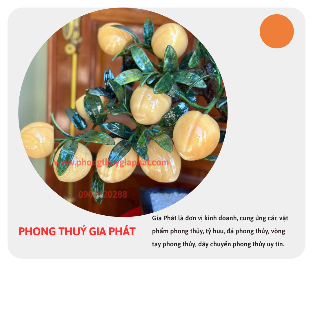 Tượng Cây Đào mới vàng 13 quả canxit vàng tự nhiên cao 40cm x ngang 34cm x sâu 20cm tài lộc hợp ACE mệnh kim thổ Trưng bày phòng khách rất là sang Cây đào